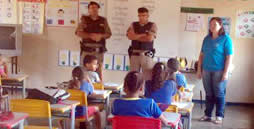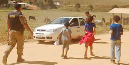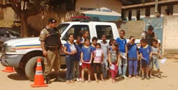 Para tanto os policiais militares de Santo Antônio do Aventureiro realizaram uma blitz com os alunos do PROETI para iniciarem essa conscientização desde pequenos. Parabens: Escola Municipal São Domingos