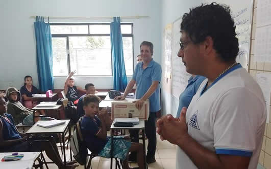 Foi realizada a Identificação de sinais de agravos de doenças em eliminação, Saúde ocular e identificação de possíveis sinais de alteração, Acompanhamento do peso e estado nutricional dos escolares e distribuição do Kits der higiene dental.