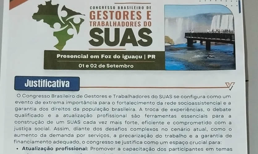 Justificativa: Diante dos desafios da área, o encontro promove a atualização profissional, o fortalecimento da rede e a defesa do SUAS, valorizando trabalhadores e ampliando a proteção social.